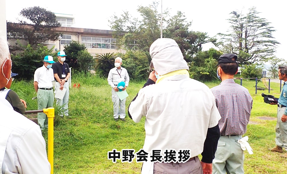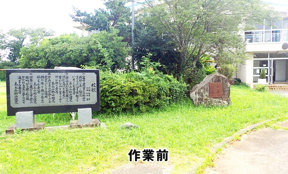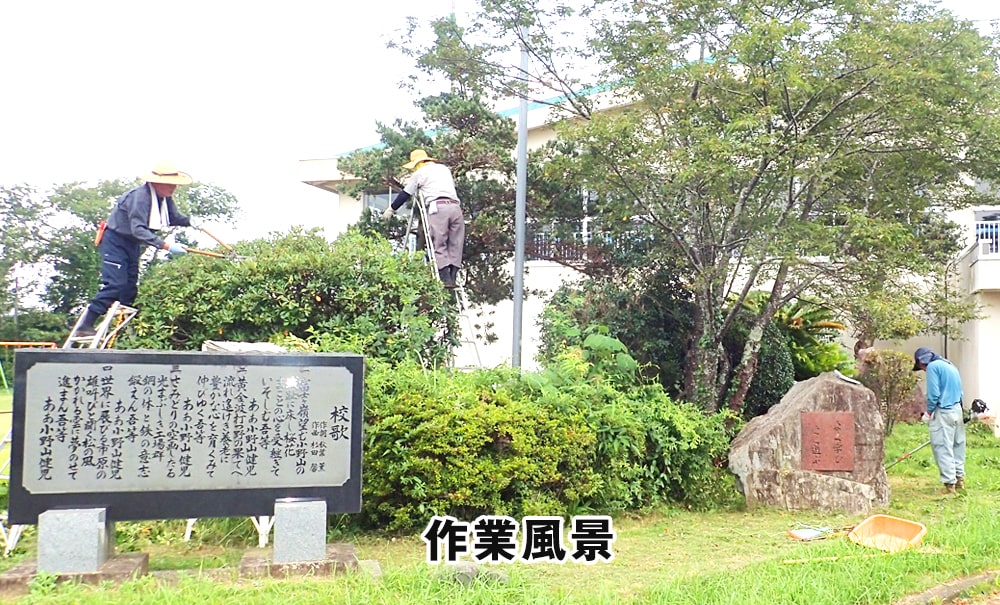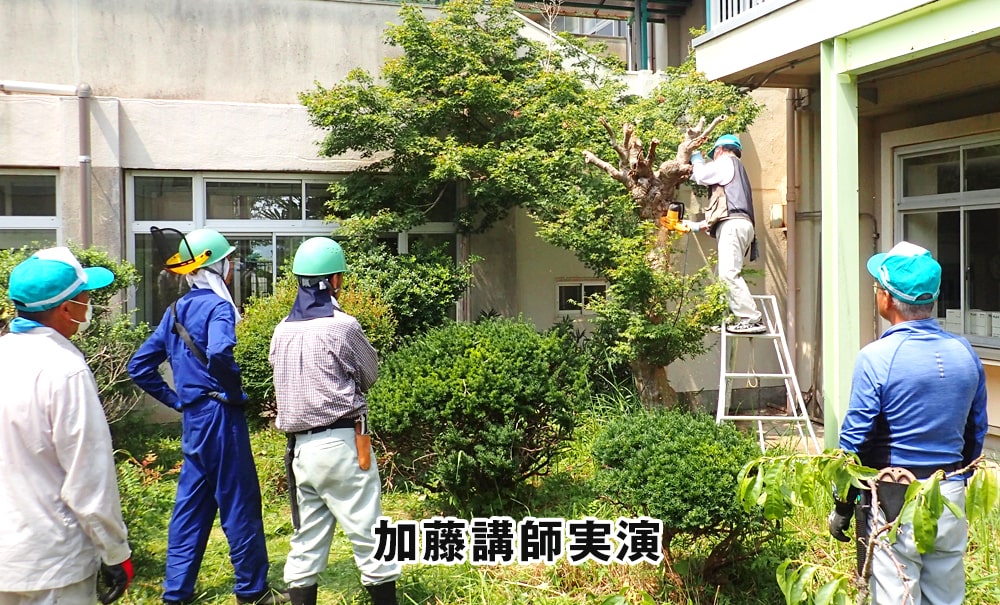 令和2年8月18日(火)植木班13名が市西小学校にて植木の剪定ボランティア活動及び講習会を行いました。