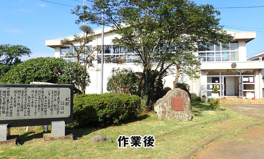 途中、市内に大雨警報が発令されましたが、奇跡的に市西小学校周辺は雨も強くならず、雨の時間帯に早めのお昼にするなど機転を利かせ、熱心に剪定作業を行いました。
