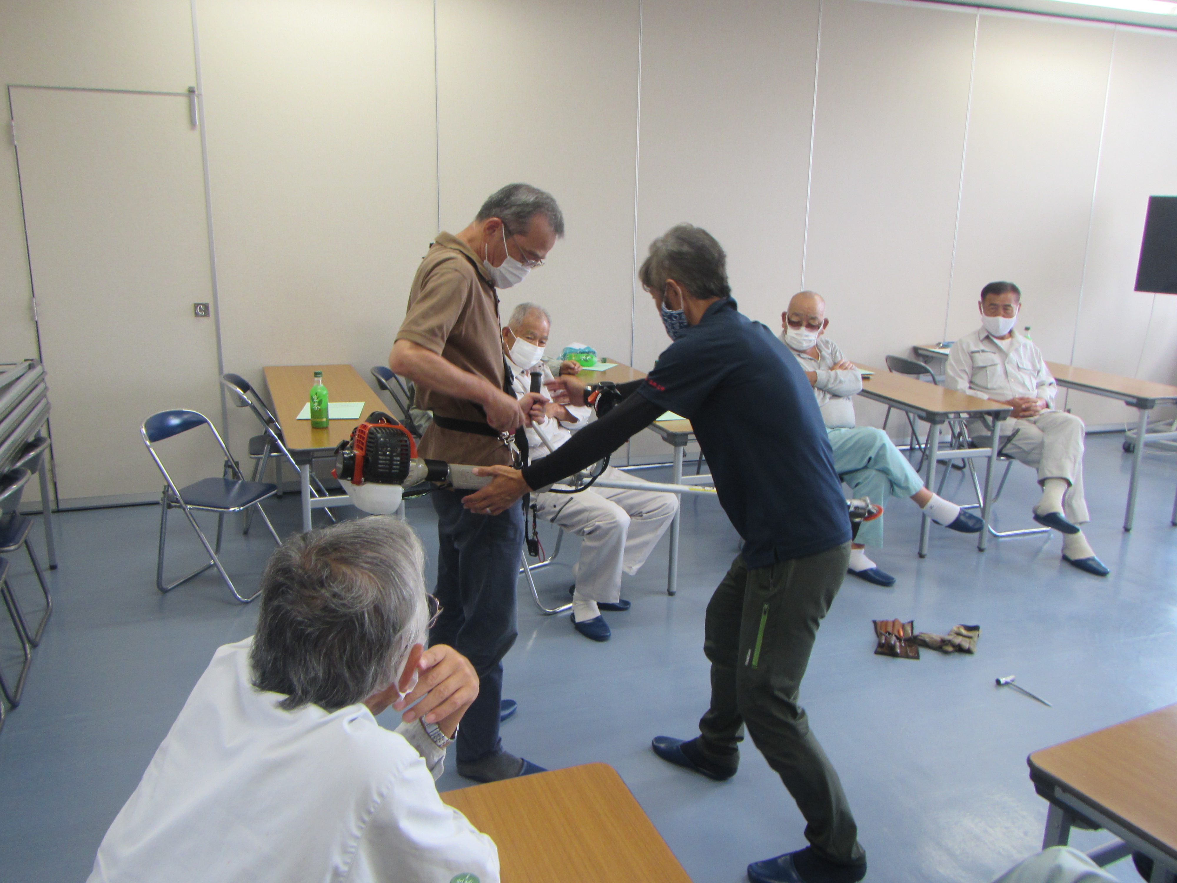 刈払機の安全な操作方法、メンテナンスについて実際に詳しく学びました。