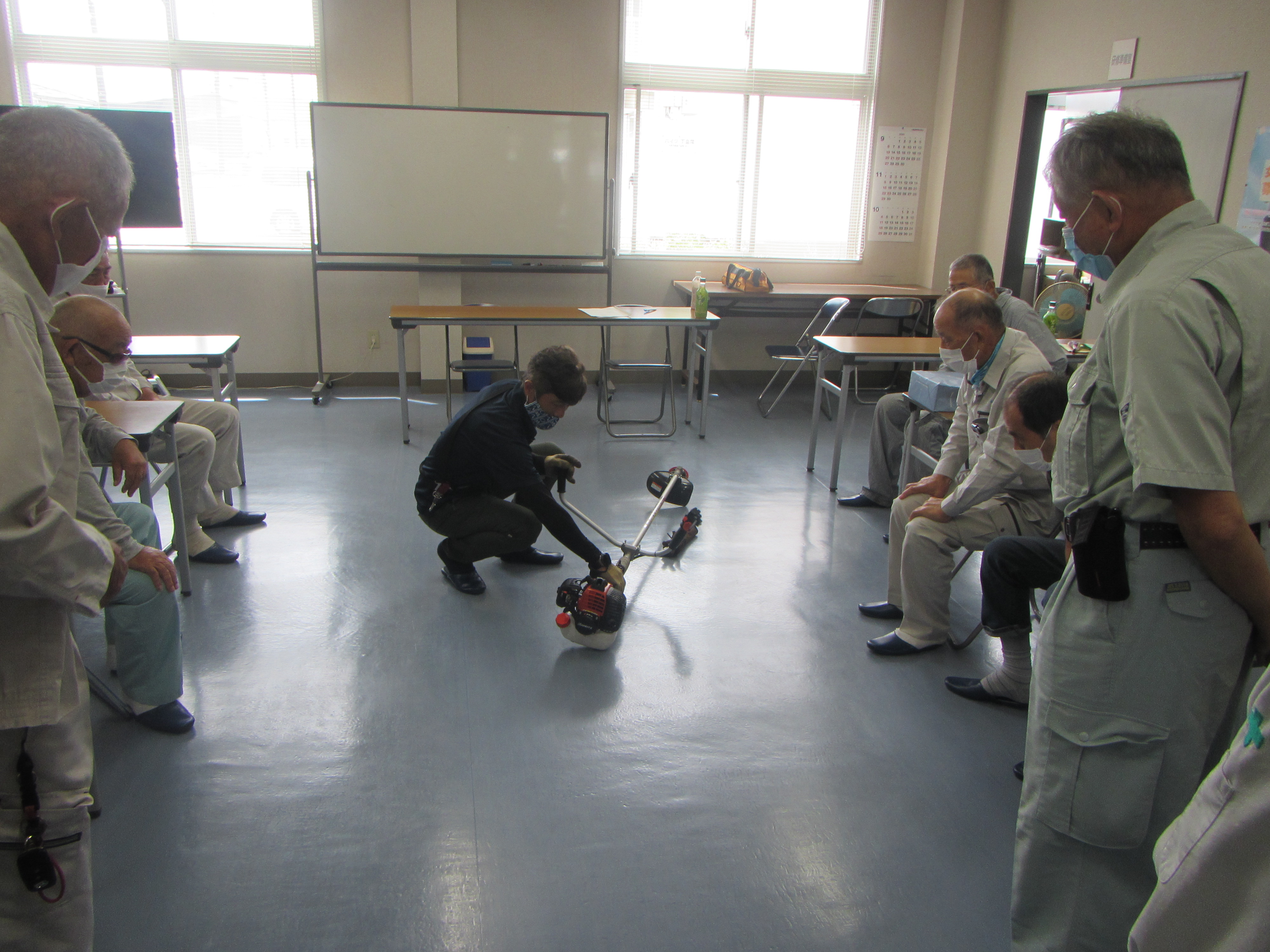 令和2年9月2日水曜日に草刈機安全講習会を開催し、千葉県森林組合の木村氏を講師に迎え、会員10名が受講しました。