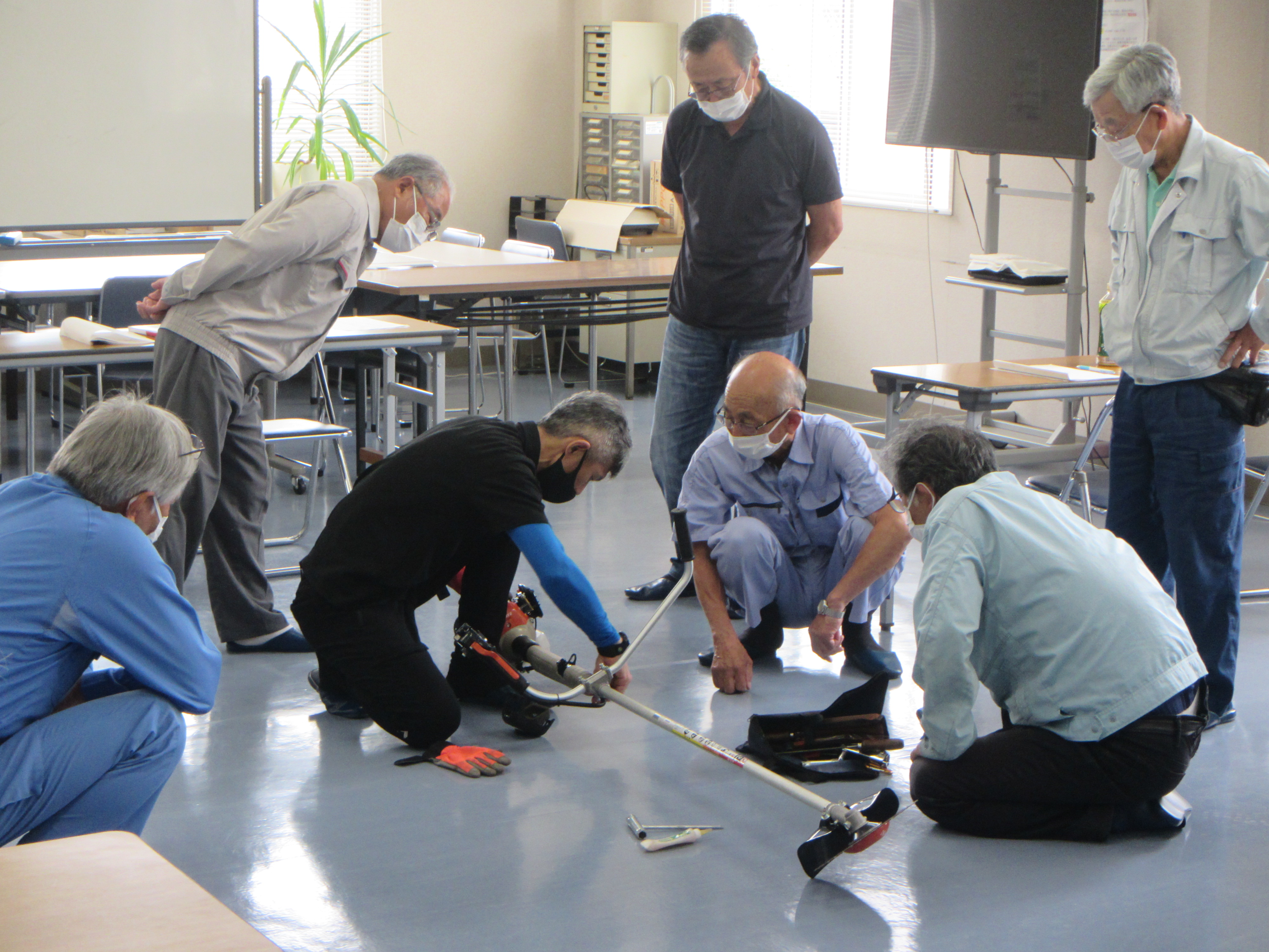 講習会では、刈払機による労働災害や、刈払機のメンテナンス、安全な操作方法等について詳しく学びました。