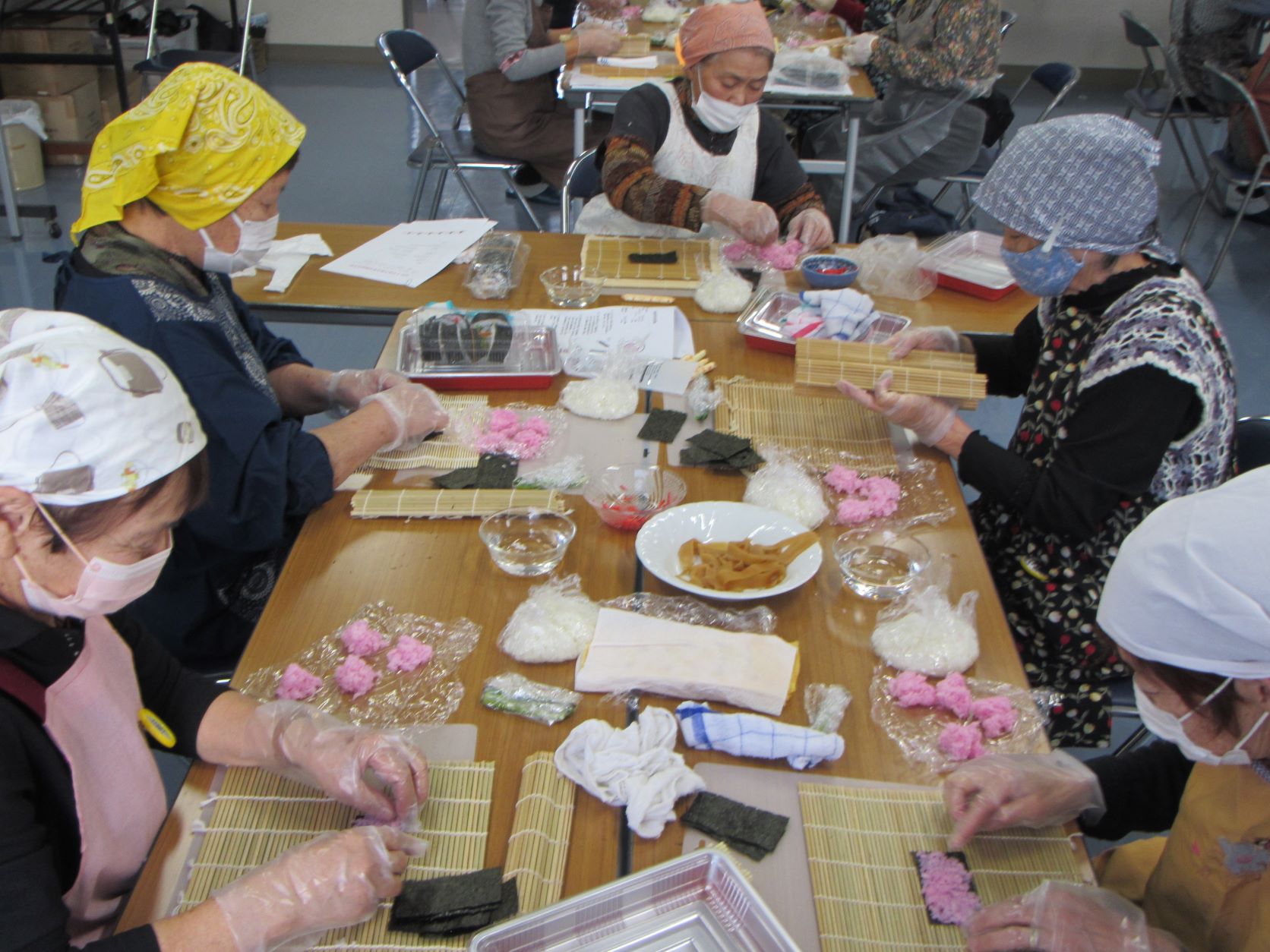 2年ぶりの太巻き寿司講習会、皆さん待ってましたと応募が殺到。女性会員17名が参加しました。