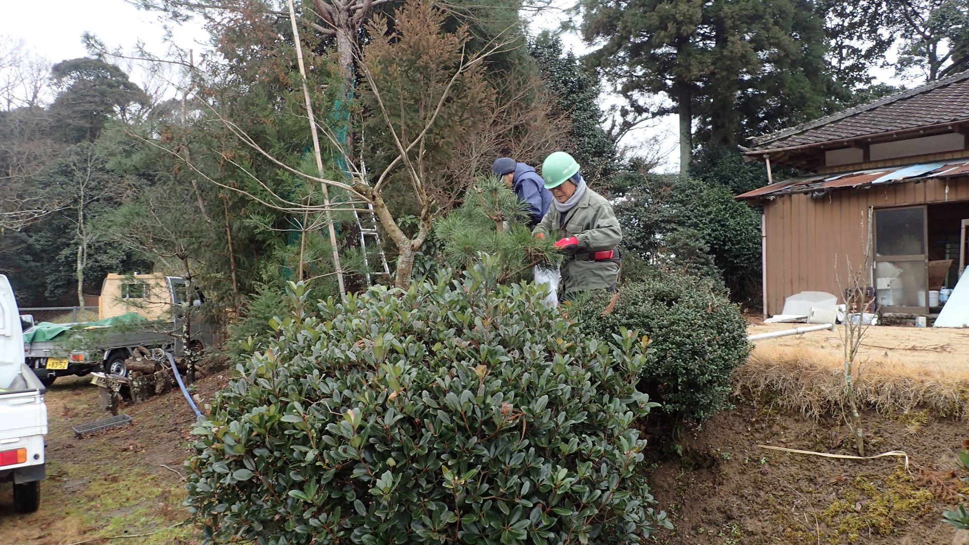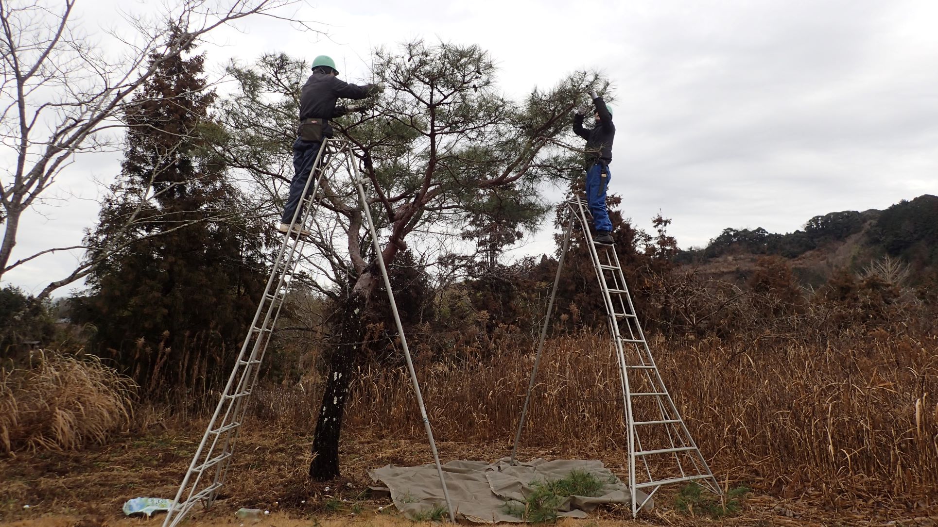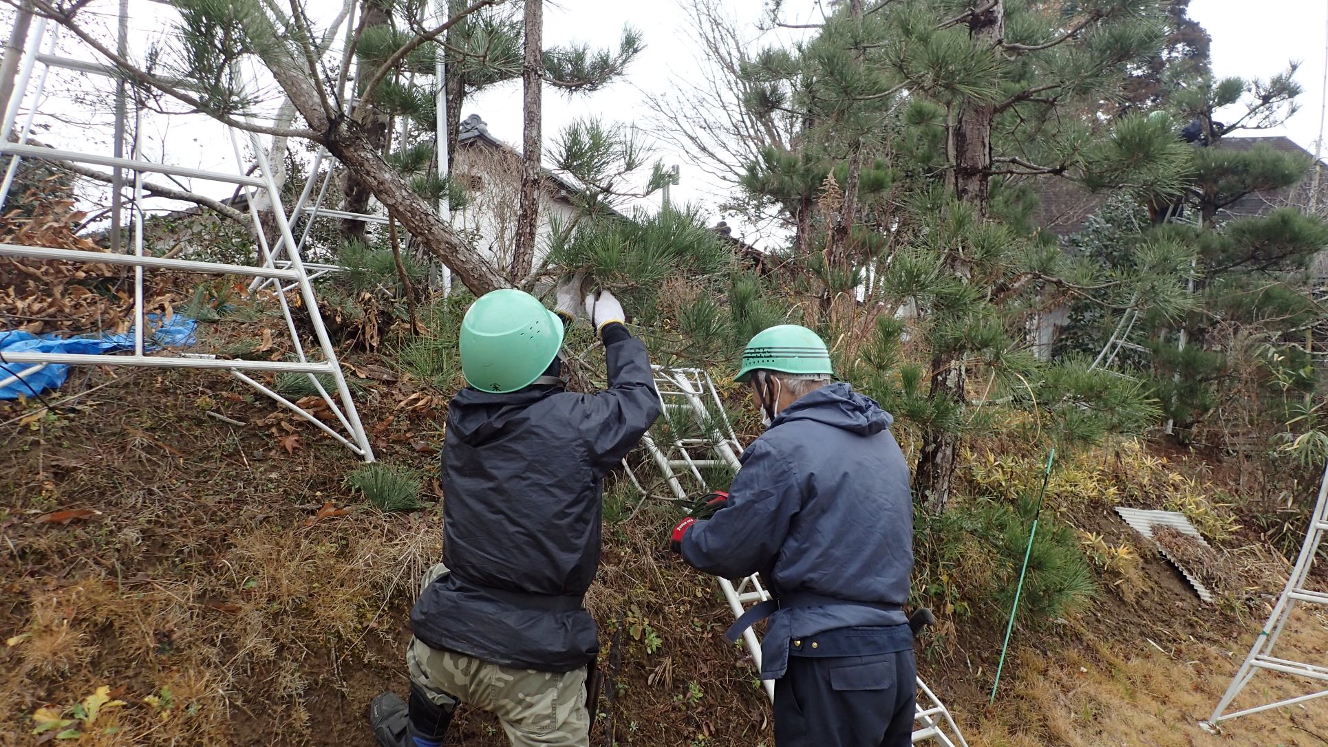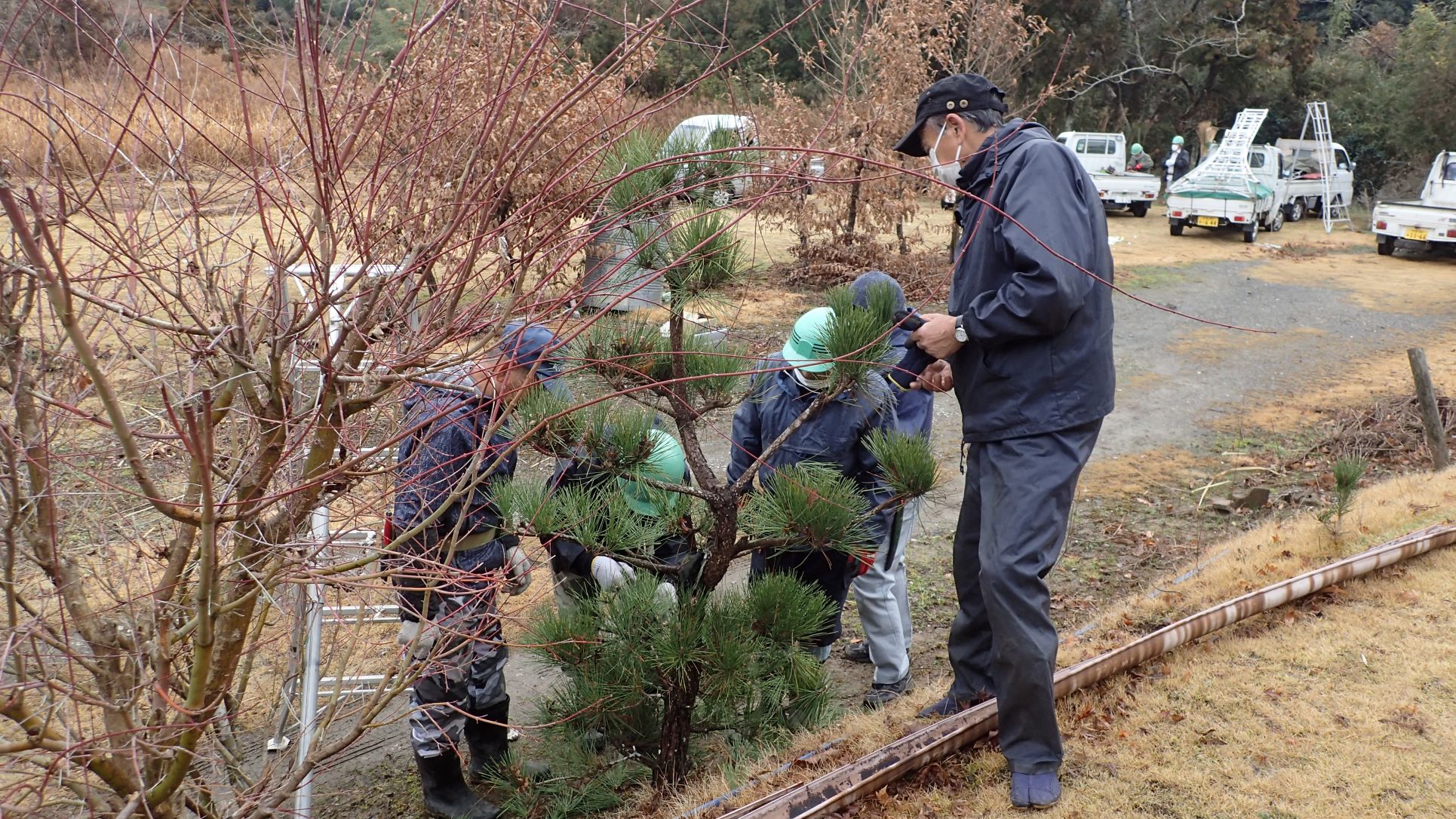研修は、手入れの仕方が難しい“松の手入れ”を行いました。
