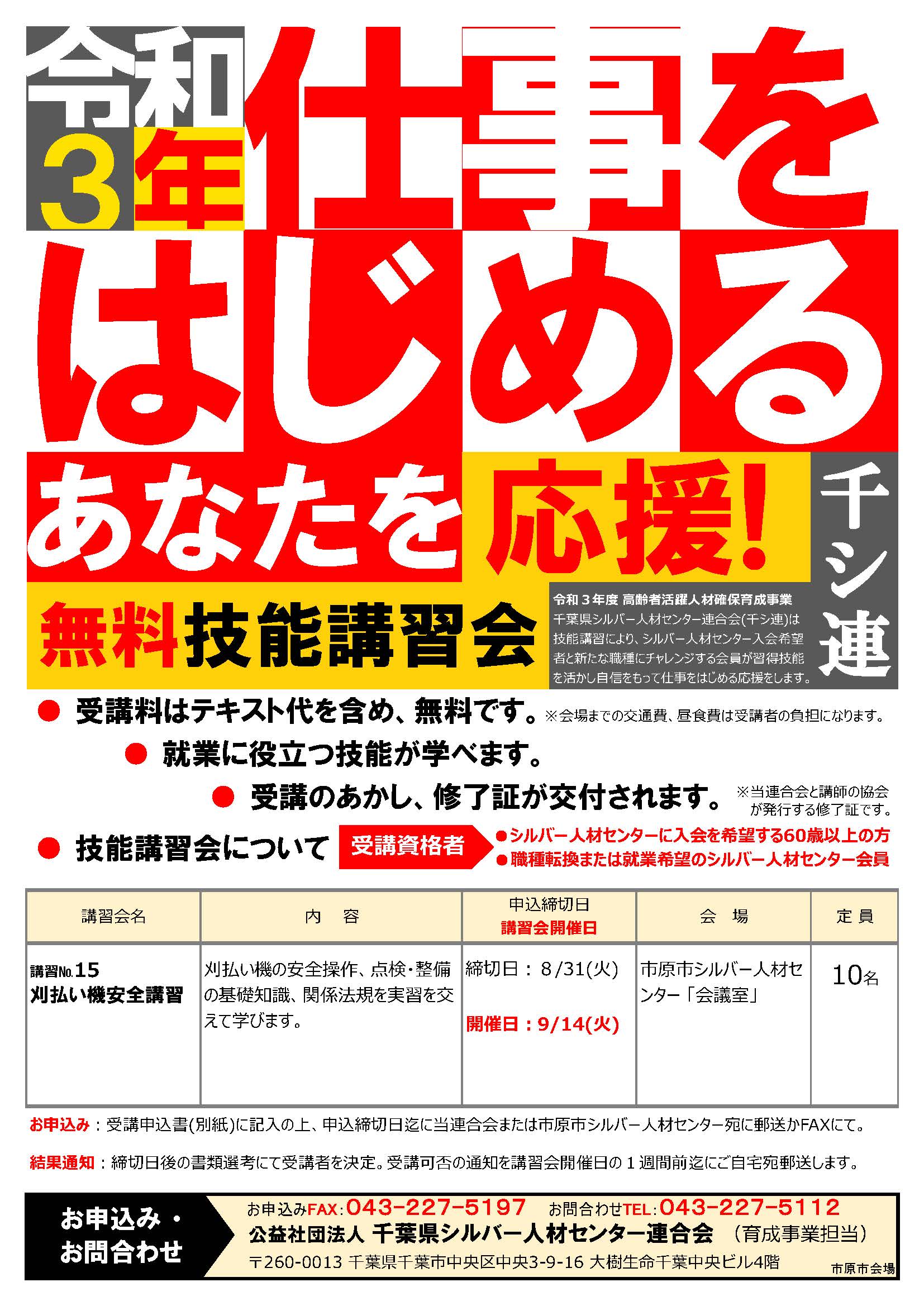 令和5年2月16,17日(木,金曜日)の2日間に渡り、市原市内にお住いの60歳以上の方を対象に、襖の張替え講習会を開催いたします。午前10時~午後4時の講習で、襖の張替えを実際に行います。講習料は無料となっておりますので、興味のある方は、是...