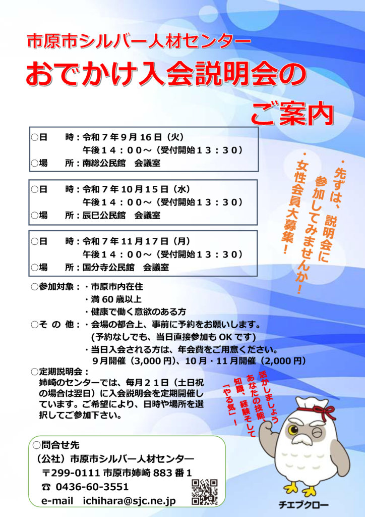 令和7年度「お出かけ入会説明会」開催のお知らせ